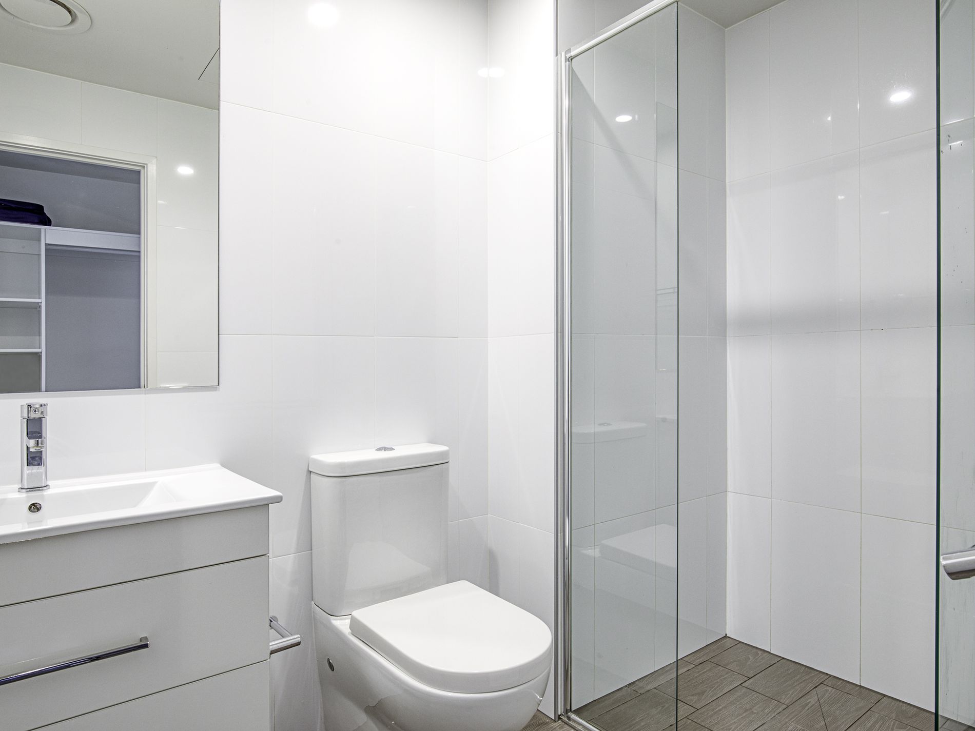 *Main bathroom with large shower recess, WC and vanity