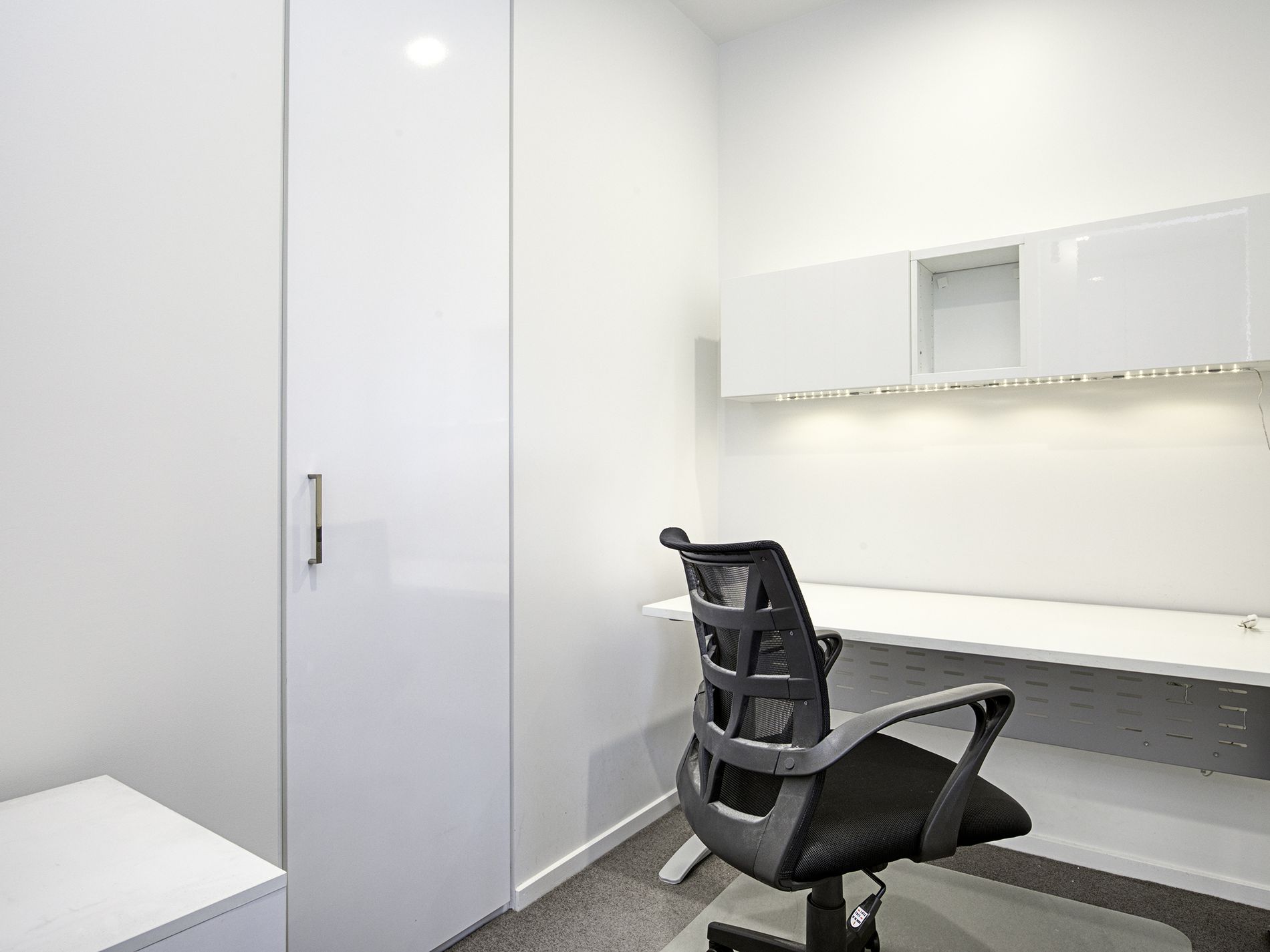 *Study with sliding glass door and overhead cupboards